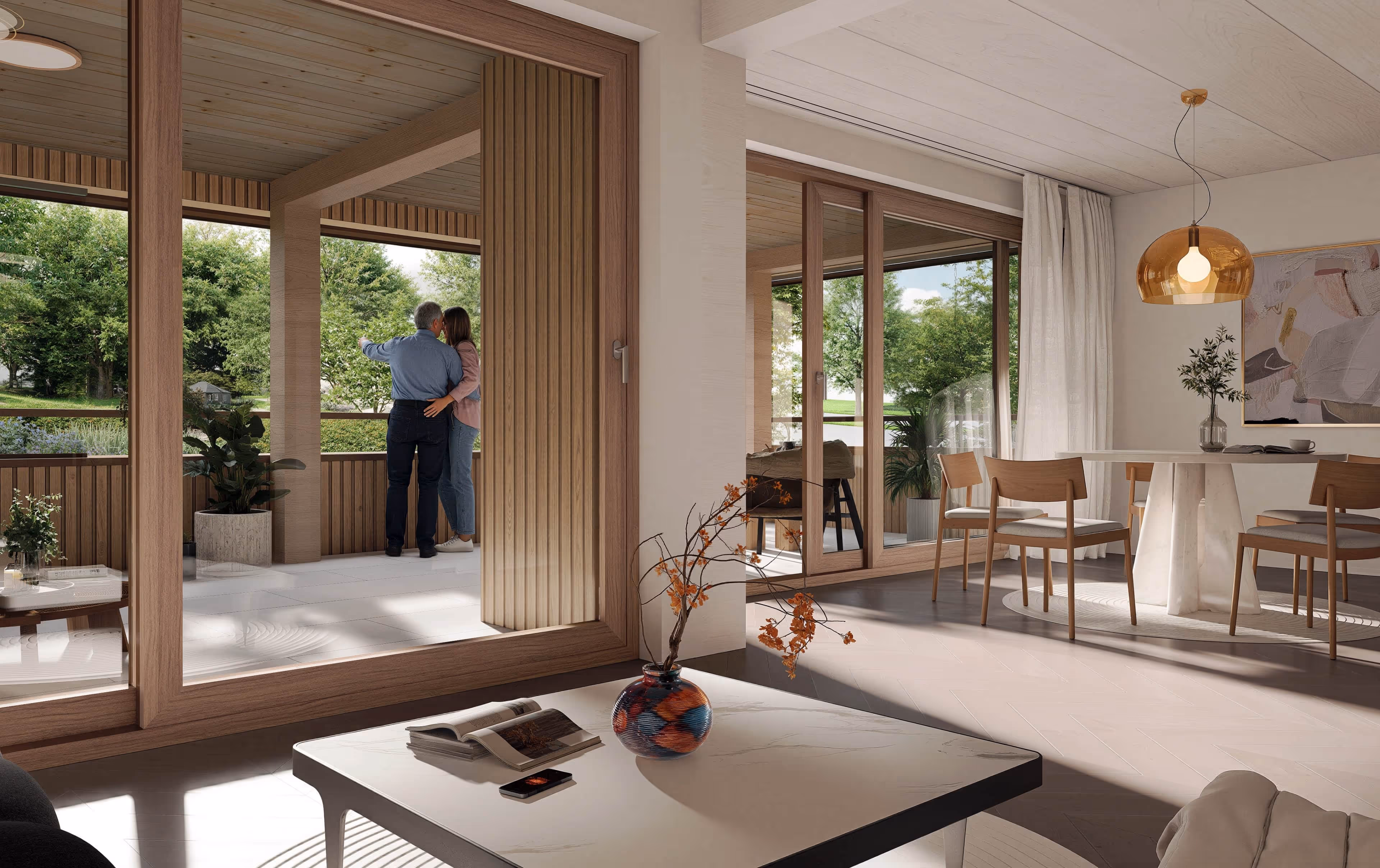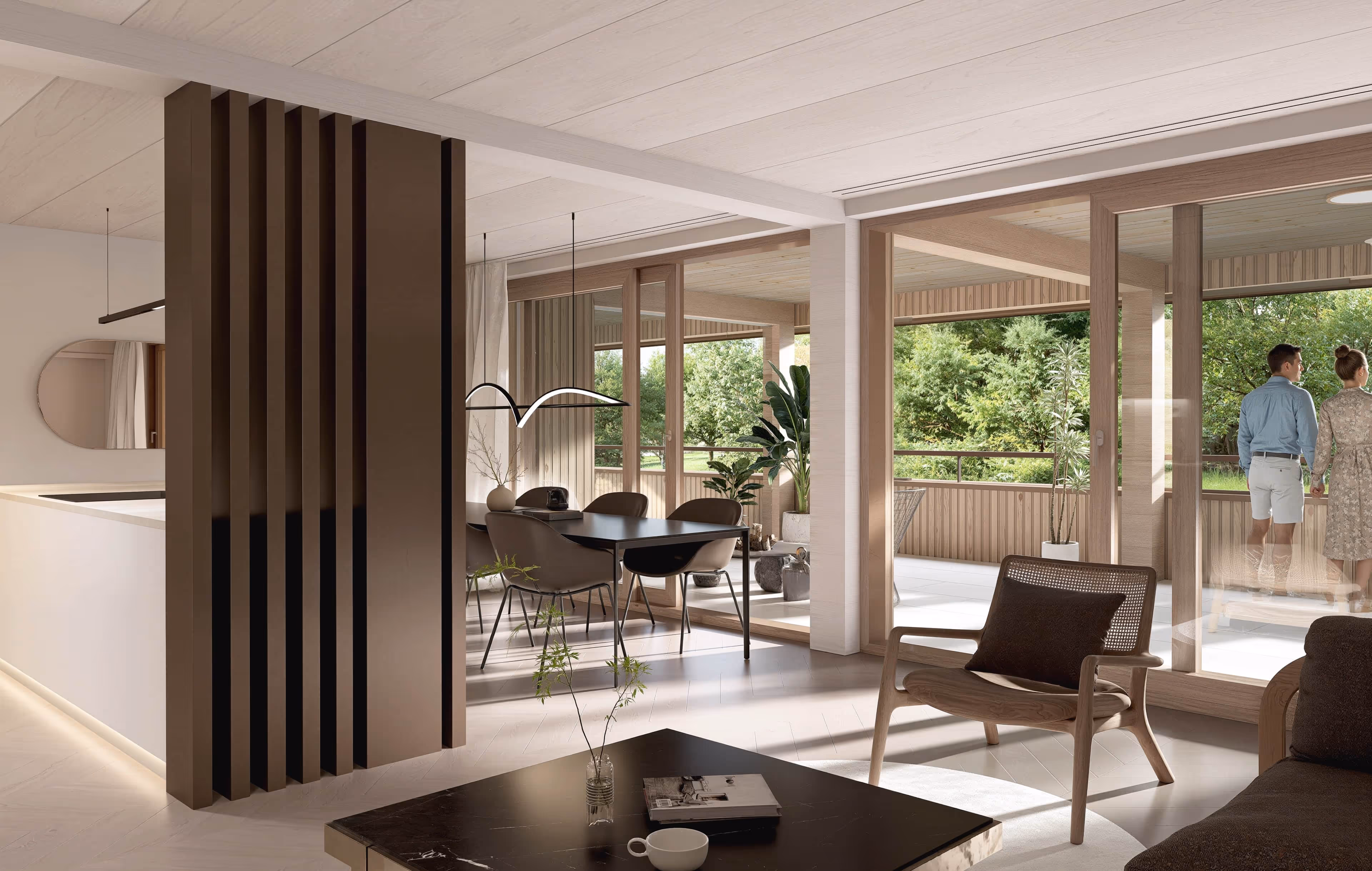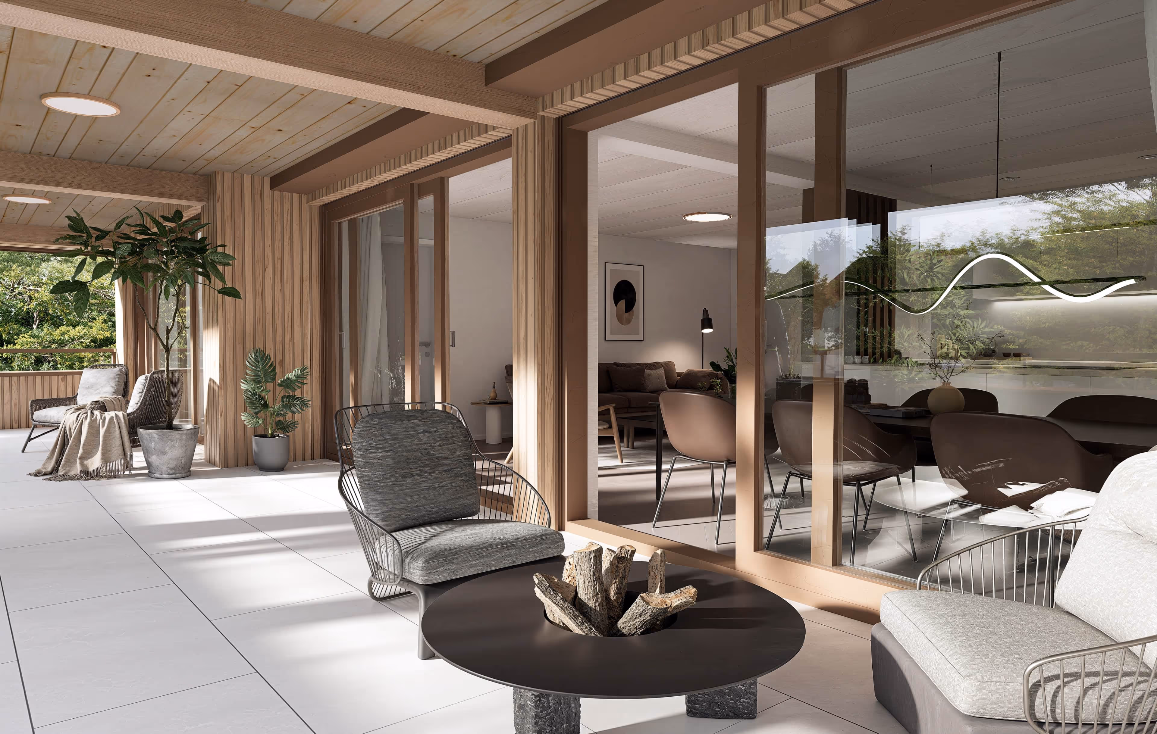 Lichtdurchflutete Räume, hochwertige Materialien und durchdachte Details sorgen für ein Wohngefühl, das Ruhe ausstrahlt und gleichzeitig höchsten Ansprüchen gerecht wird.
